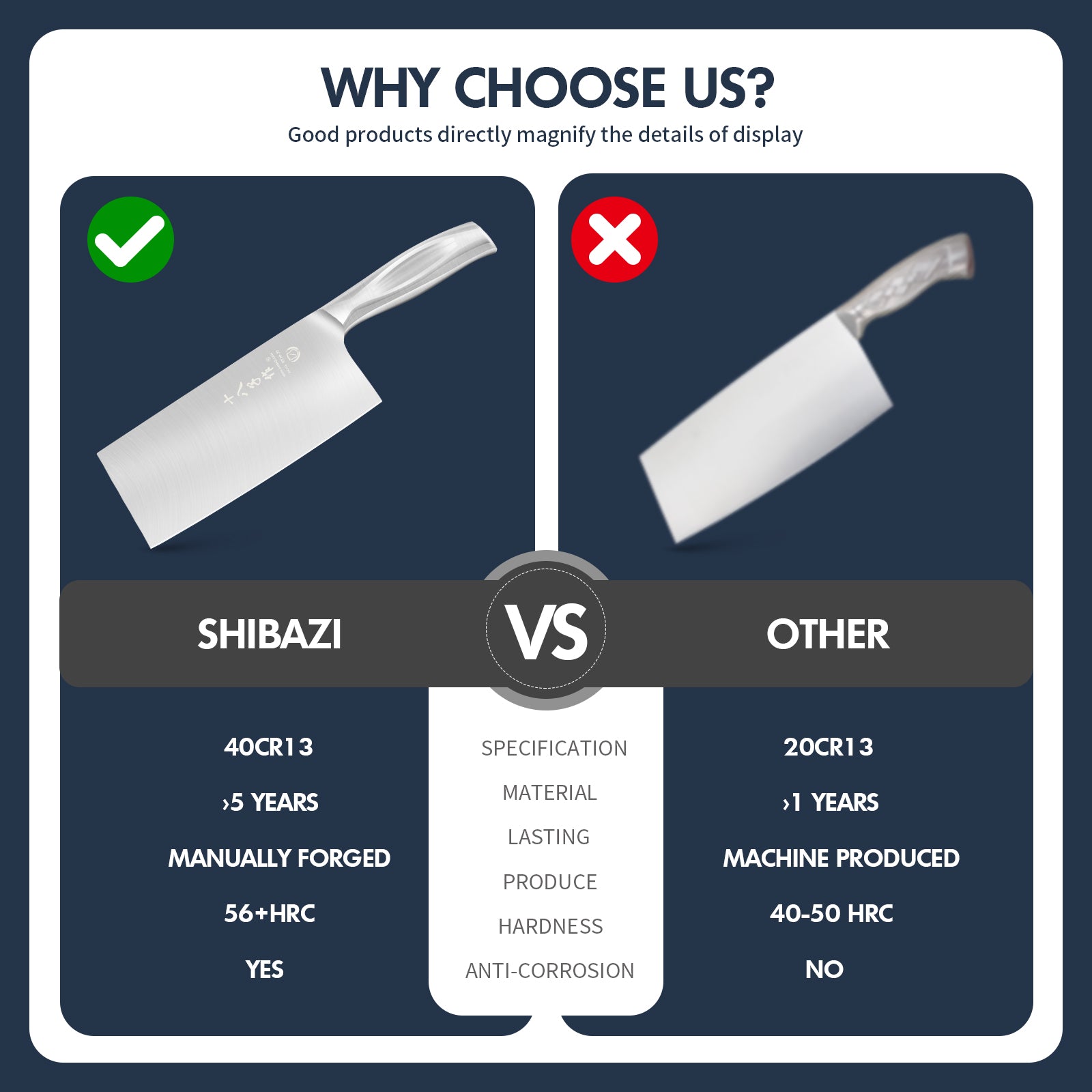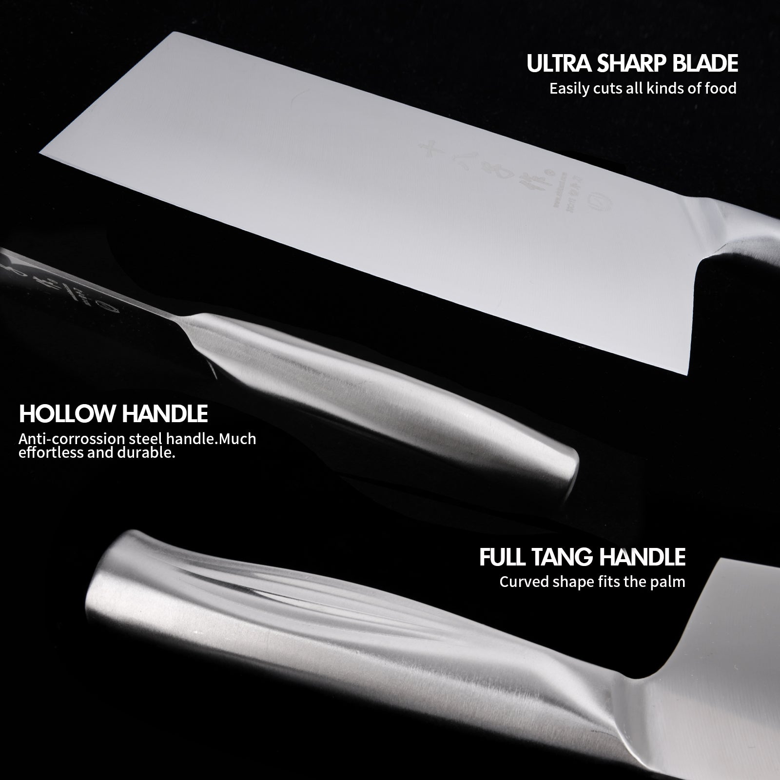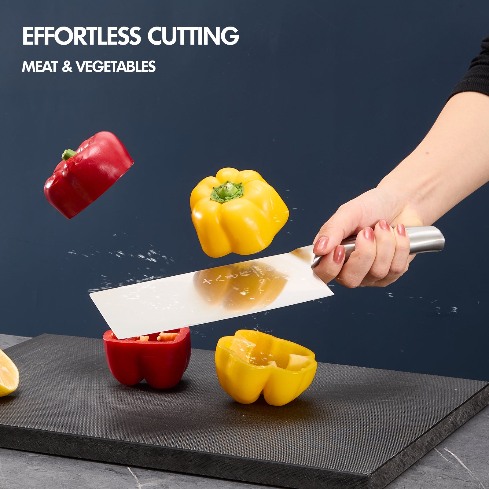 - 【Multifunctional knife set】This kitchen knife set includes 2 razor-sharp knives: a cleaver knife and a fruit knife.Whether you're slicing meat,vegetables,dicing herbs,or prepping fruits, each kitchen knife of this set is designed to handle a variety of tasks effortlessly. Perfect for both professional chefs and home cooking enthusiasts.