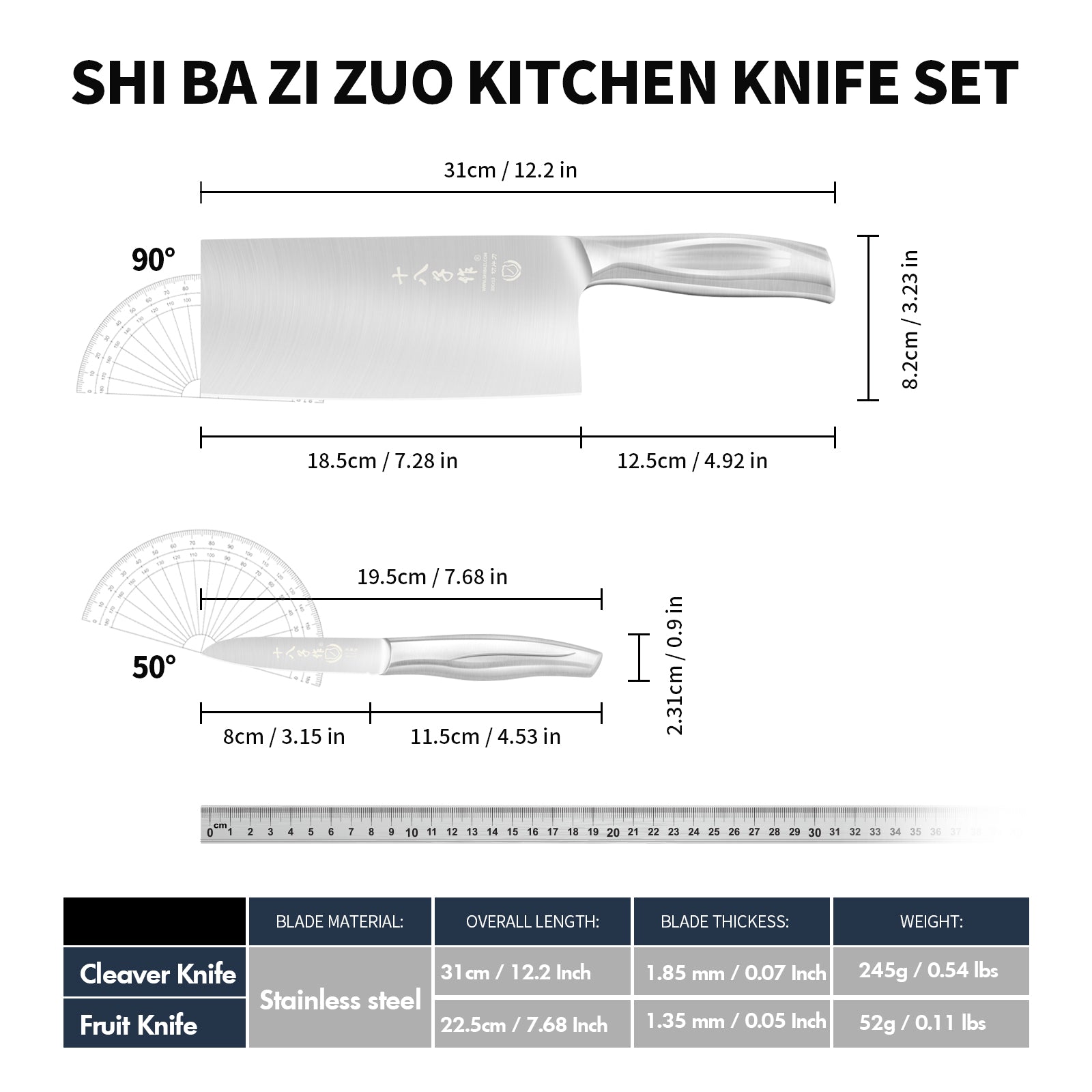 SHI BA ZI ZUO 2 PCS Kitchen Knife Set,Professional Chinese Chef Knife and Fruit Knife with Ergonomic Handle Stainless Steel Chef Knife for Kitchen and Restaurant