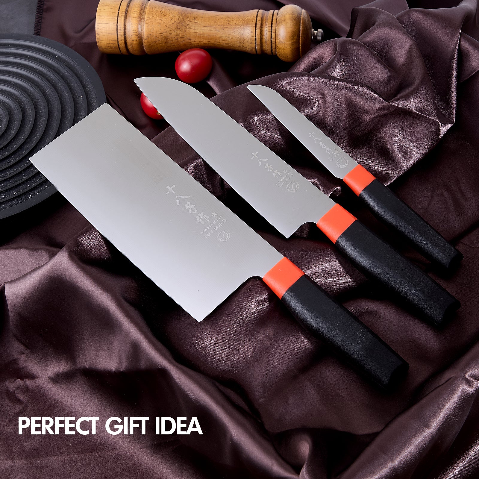 SHI BA ZI ZUO 3PCS Kitchen Knife Set,Professional Santoku Knife Utility Knife Fruit Knife Meat Cleaver Knife,with Ergonomic Design Handle