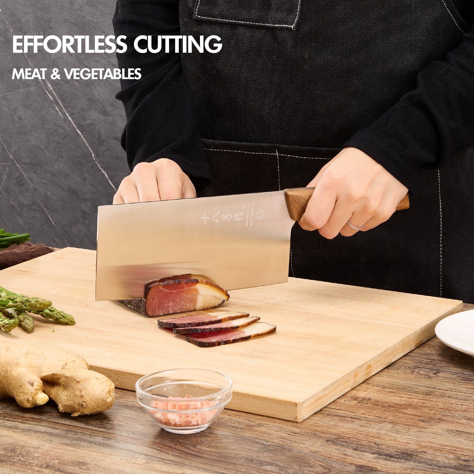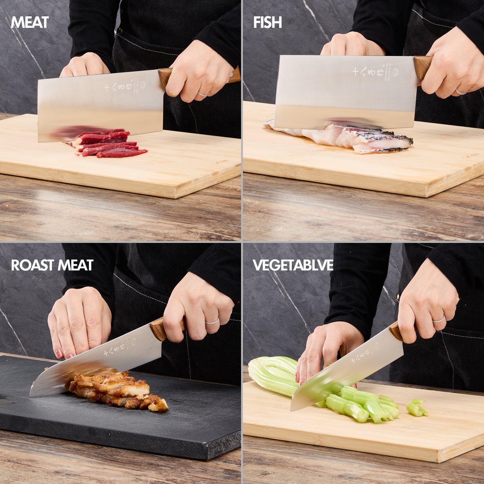 SHI BA ZI ZUO Chinese Kitchen Knife and Santoku Knife,2 PCS Kitchen Knife Set Chef Knife for Cutting Meat and Vegetables,with Ergonomic Design Wooden Handle