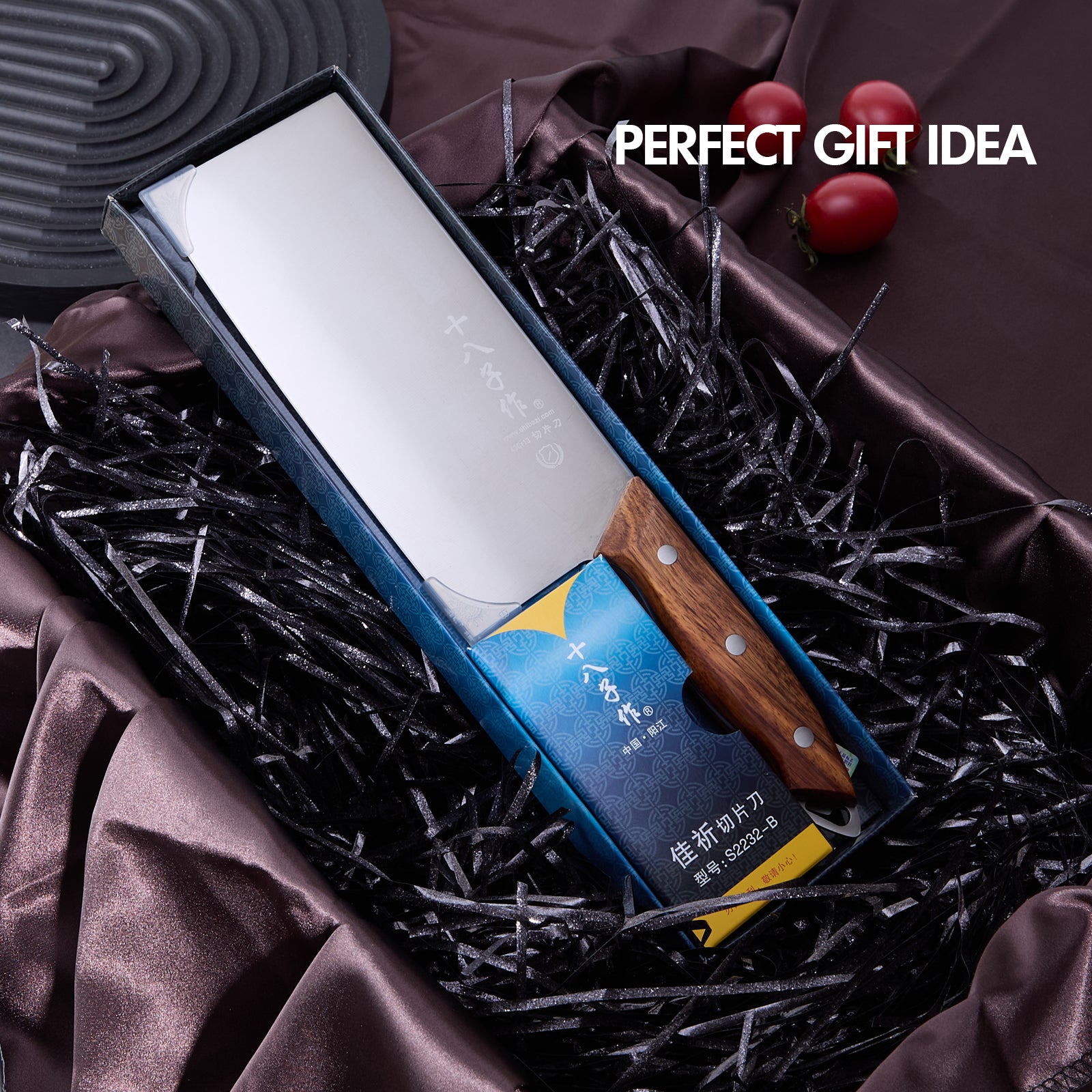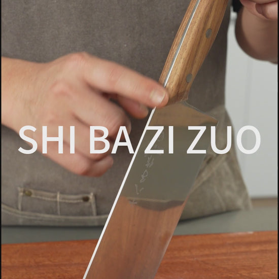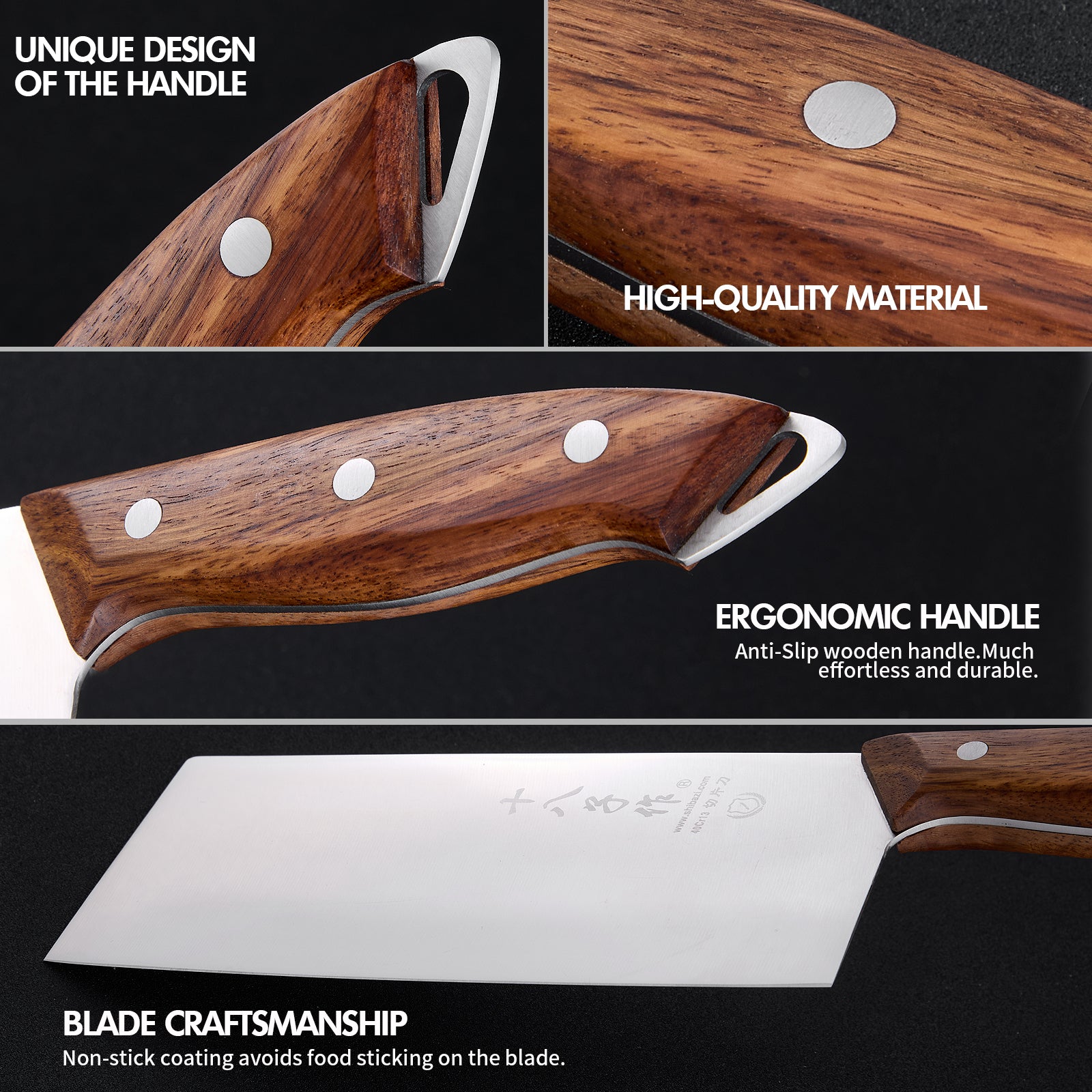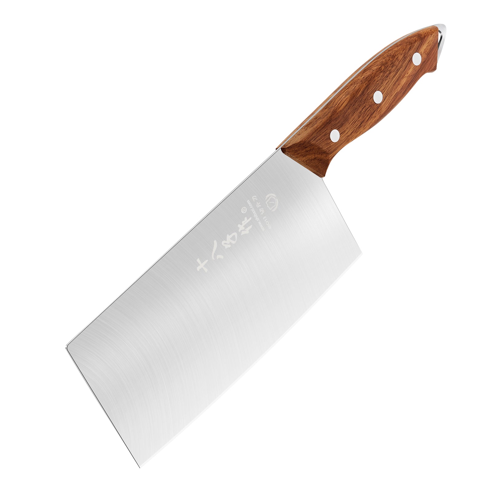 SHI BA ZI ZUO Chinese Knife Professional Kitchen Knife Chef Knife Stainless Steel Meat Cleaver Knife Ultra-Sharp Blade with Anti-Slip Wooden Handle