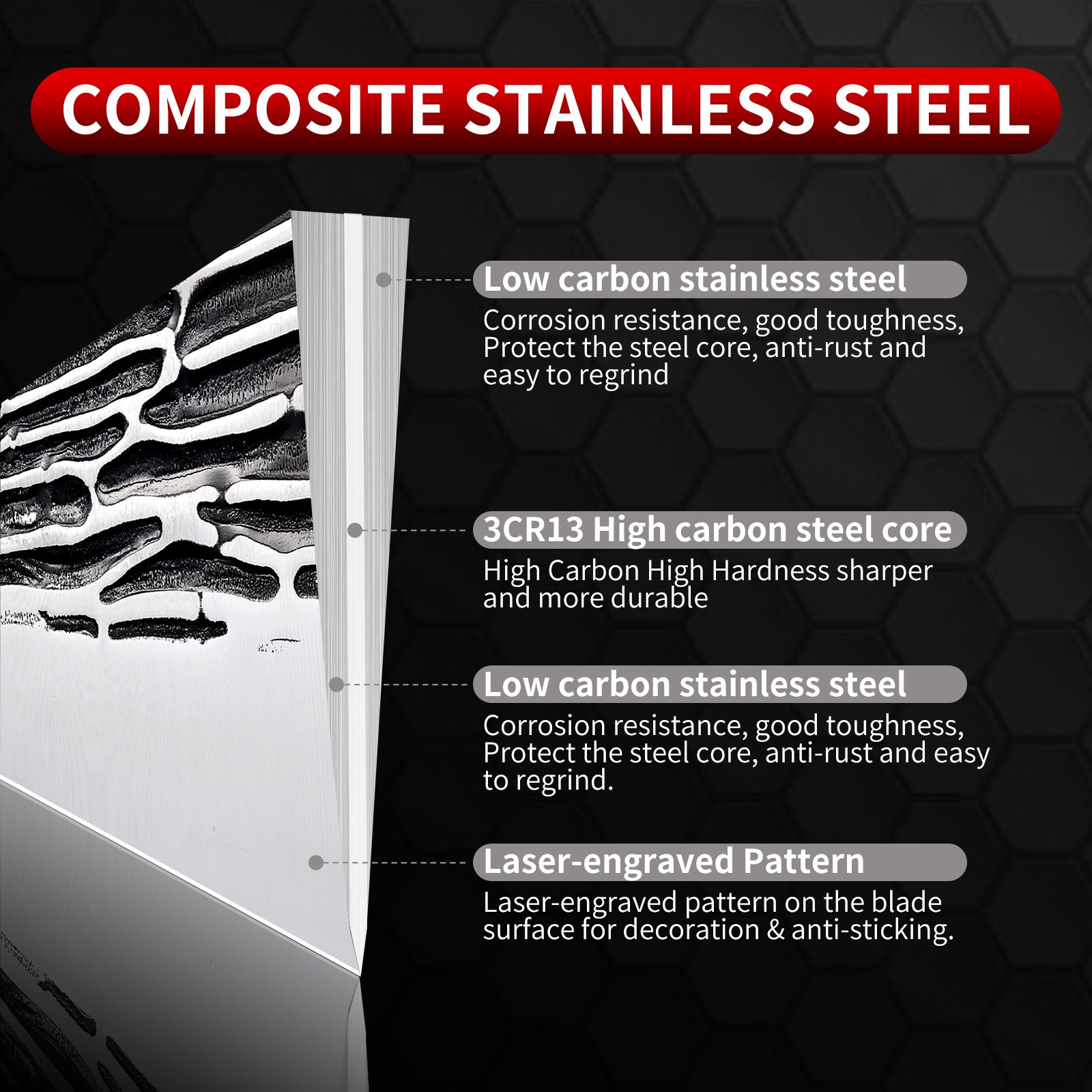- 【Precise Craftsmanship】These forged chef knives are hand forged by craftsmen with more than 30 years of experience. Our durable knife boasts incredibly sharp blades. The chopping knife can be keeped the blade sharp for a long time, helping you cut food effortlessly. The oxidation blackening and hammering process add an anti-stick effect, enhancing the knife's technical and aesthetic appeal.