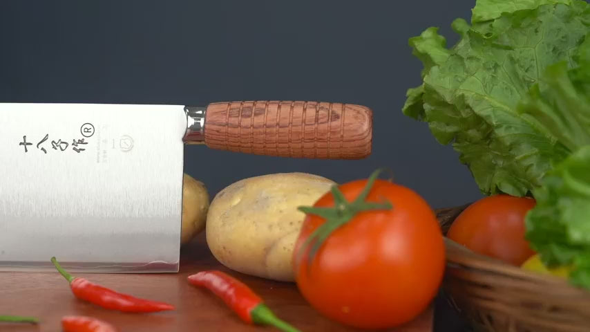SHI BA ZI ZUO 9-Zoll-chinesisches Kochmesser, dünnes, leichtes Küchenmesser, Edelstahl-Gemüsemesser, Antihaft-Klinge mit rutschfestem Holzgriff, F208-1