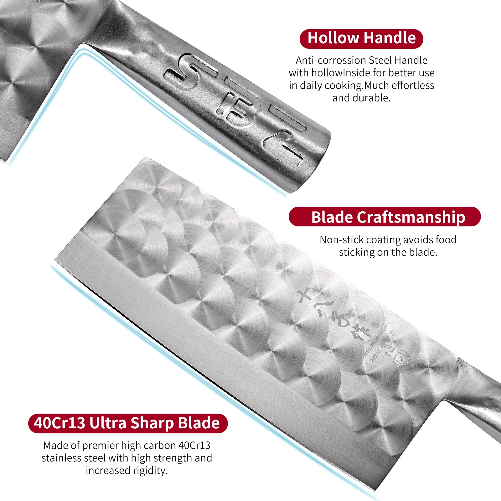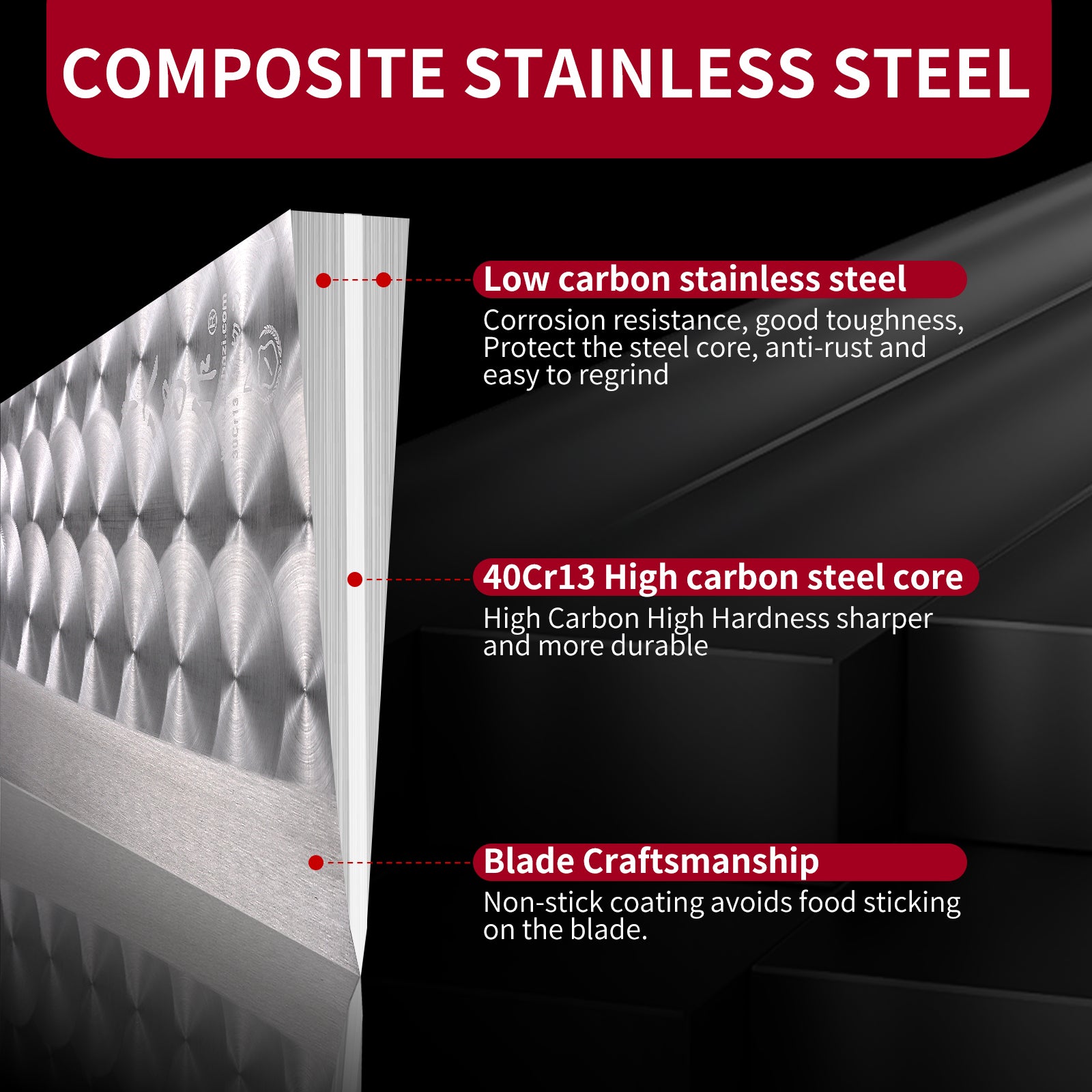 - Blade Craftsmanship - Vacuum heat treatment endows the steel with best mechanical property. Non-stick coating avoids food sticking on the blade. Wire-drawing integrated full tang blade is more stable and safer.