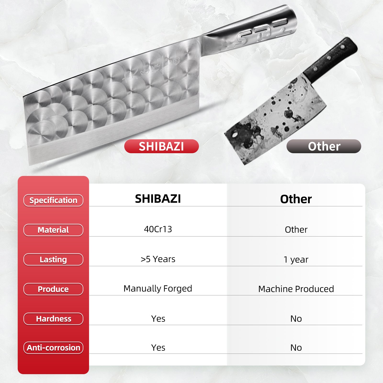 SHI BA ZI ZUO Meat Bone Cleaver Knife Professional Kitchen Knife Vegetable Knife for Effortless Precision Slicing and Chopping