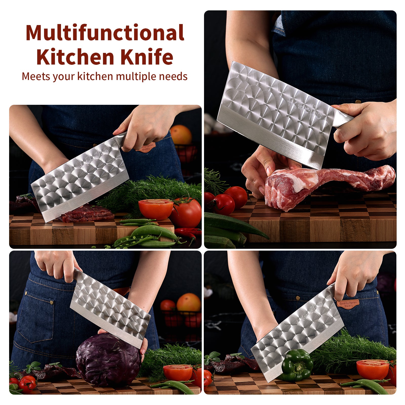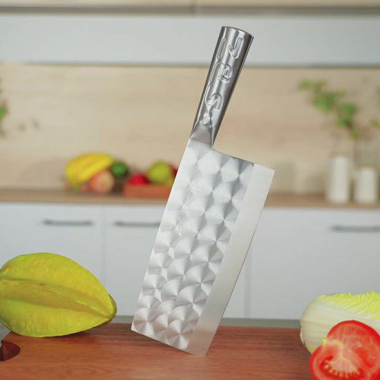 - Full Purpose Cleaver - Ultra sharp blade edge design and well balance of this knife make it perfectly for cutting, slicing, dicing and mincing meat, vegetable. Wide blade is able to smash garlic. It is suitable for homes and restaurants.